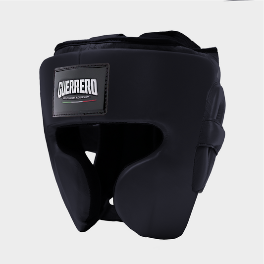 Casco de boxeo de cuero genuino negro de protección completa | Guerrero™